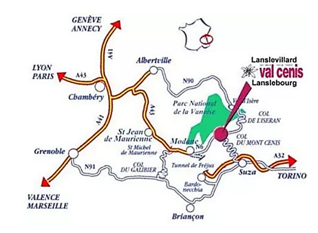 - En voiture : autoroute jusqu’à Modane depuis Paris, Chambéry, Lyon, Grenoble, Milan ou Turin, puis RD 215 . Depuis l’Italie, le col du Mont Cenis permet d’éviter le tunnel du Fréjus.