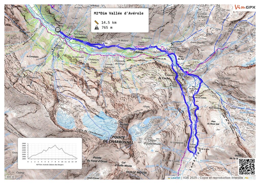 • Trail to the hamlet, then to the refuge of Avérole.